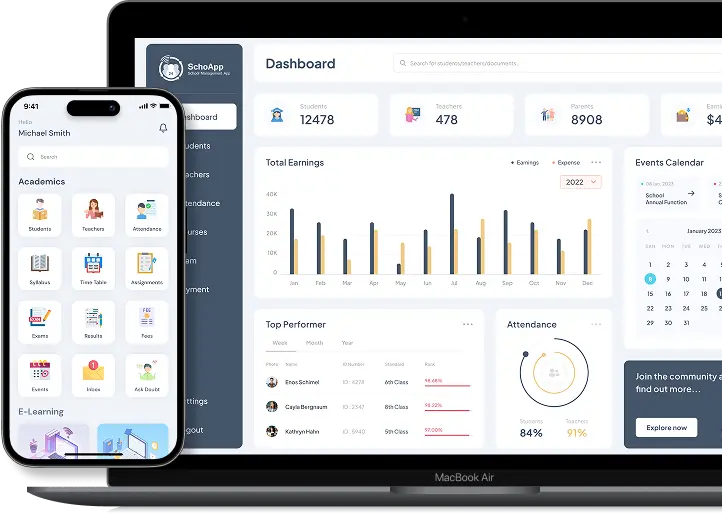 Custom school management software to simplify attendance, exams, transport, and communication for primary and secondary schools.
