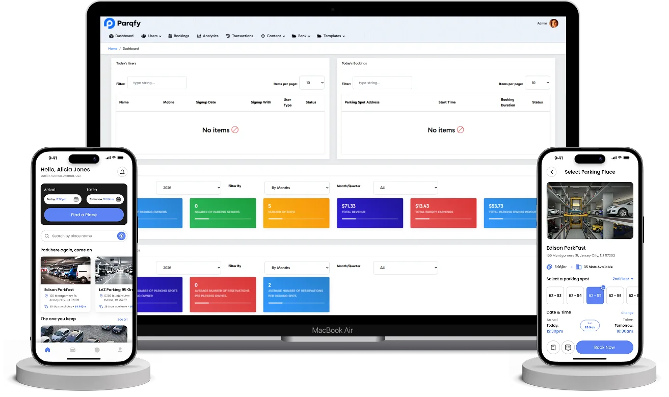 From discovering available spots to making quick reservations, our smart parking app ecosystem ensures a smooth, intuitive, and reliable experience for users, operators, and administrators - all powered by intelligent automation and real-time data.